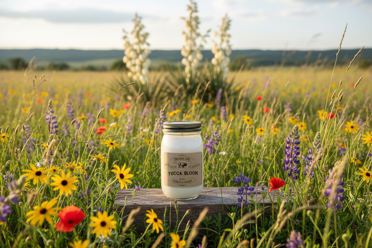 Yucca plants bloom gorgeous, white teardrop flowers in late Spring across the prairie. The scent features clean, soft notes of delicate, white cactus blooms, bergamot and lush green cactus stems.